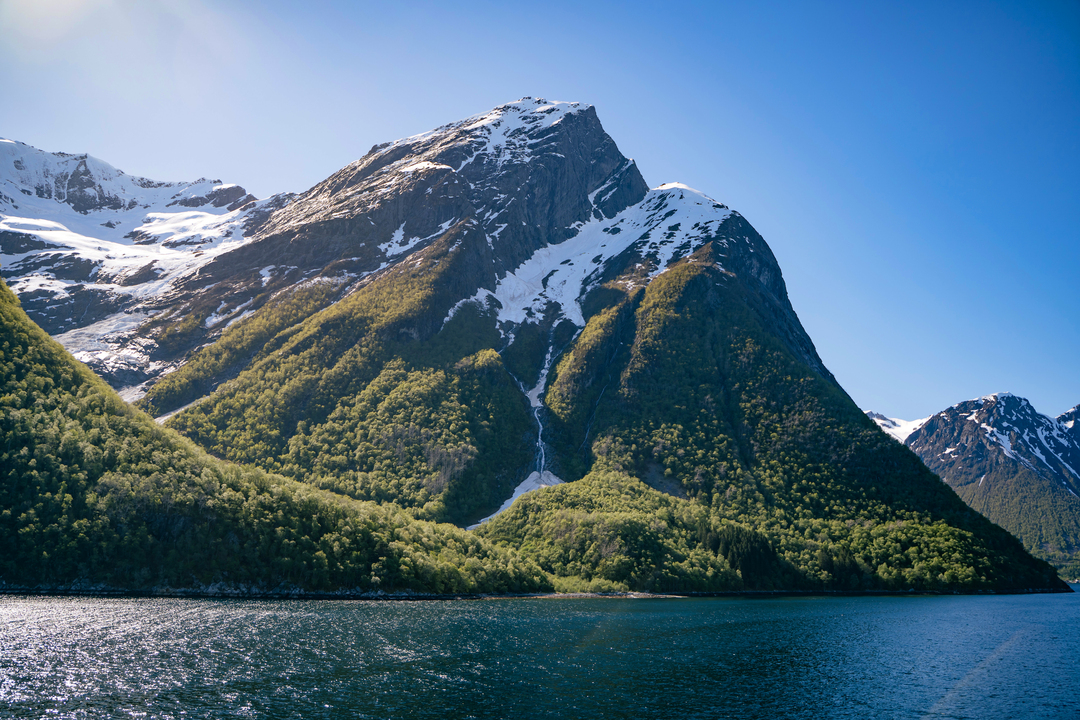 Erkunden Sie die Landschaft um das Dorf Geiranger und genießen Sie den Panoramablick auf den UNESCO-geschützten Geirangerfjord. Der Geirangerfjord ist umgeben von schneebedeckten Berggipfeln, wunderschönen Wasserfällen und üppiger, grüner Vegetation. Fahren Sie von Geiranger aus die kurvenreiche, steile Ørneveien (Adlerstraße) hinauf und genießen Sie auf dem Weg zum See Eidalsvatnet die herrliche Aussicht auf den Fjord. Von Eidsdal aus überqueren Sie den Fjord nach Linge. Weiter geht es in die Berge und zur beeindruckenden Gudbrandsjuvet-Schlucht. Anschließend fahren Sie den Trollstigen-Pass hinunter, eine Bergstraße mit 11 Haarnadelkurven, die atemberaubende Ausblicke auf steile Wasserfälle, tiefe Fjorde und blühende Täler bietet. Ein weiterer Höhepunkt des Tages! Nach einem heißen Getränk und einem Snack setzen Sie die Tour in der sanfteren Landschaft des Romsdalsfjords fort. Sie beenden den Tag mit einem Abendessen in Molde und gehen dann wieder an Bord des Hurtigruten-Schiffs.
