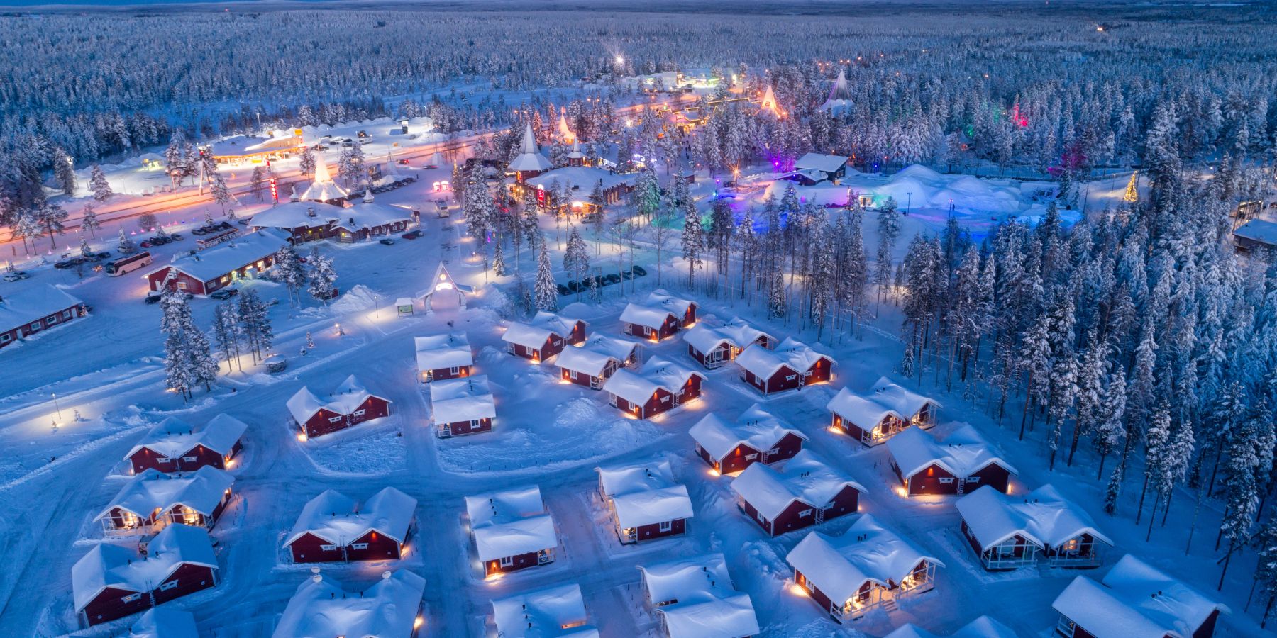 Sowohl der Name als auch das Dorf scheinen direkt einem Märchen entsprungen zu sein. Das finnische Dorf ist für seine authentischen und modernen Chalets bekannt. Die Blockhütten sind aus dem Rundholz jahrhundertealter Tannen gebaut. Drinnen finden Sie alles, was Sie für Ihren Aufenthalt brauchen und natürlich Ihre eigene Sauna – Sie sind ja schließlich in Finnland. Nur fünf Minuten vom Dorf entfernt befindet sich das Skigebiet Yllas. Hier können Sie Skifahren und Snowboarden. Sie können aber auch eine Reihe von lappländischen Aktivitäten unternehmen.